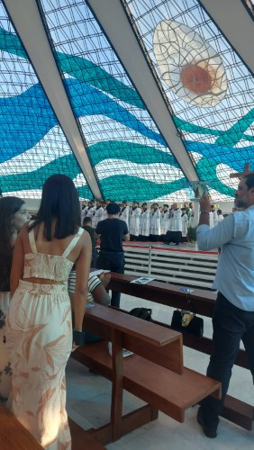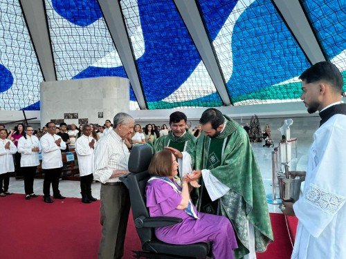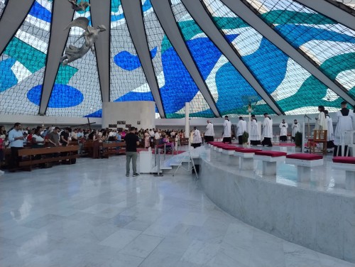 Missa na Catedral Metropolitana de Brasília, onde há 55 anos, Victoria e William se casaram (16 de janeiro de 1971).