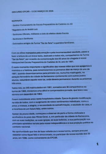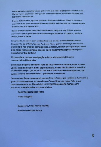 Discurso do Tenente-Brigadeiro Av. WILLIAM DE OLIVEIRA BARROS, Ministro do STM Aposentado, na EPCAR , em 13 de março de 2026